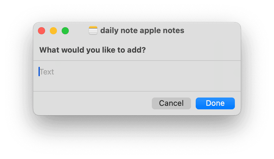I use a shortcut to add to my daily note in apple notes all the time. Lets me capture my thoughts, lists and things my brain is bound to forget.